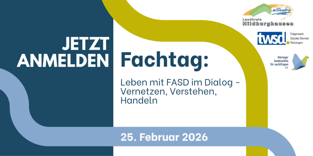 Diesen und weiteren Fragen möchten wir bei unserem Fachtag „Leben mit FASD im Dialog – Vernetzen. Verstehen. Handeln“ am 25. Februar 2026 in der Georgenhalle des Helios Klinikums Hildburghausen gemeinsam mit Fachkräften aus Suchthilfe, Medizin, Pädagogik, Jugendhilfe und weiteren Bereichen nachgehen.